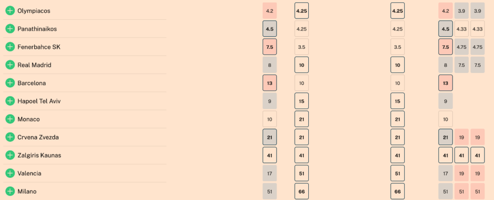 Међународне кладионице нас тренутно виде као осмог фаворита за освајање Евролиге. Испред нас је дакле 7 тимова. У том смислу пласман у Плејоф или бар на седмо-осмо место у плеј-ину није нешто о чему маштамо као и сваке сезоне, то је реалан исход уколико нас заобиђу повреде. Иначе, уколико сутра добијемо Макаби, имаћемо, ако се не варам, најбољи резултат који смо икада имали Евролиги (17:10).