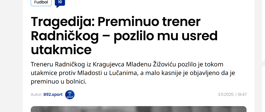 Nisam gledao meč nego videh vest, strašno! Nek počiva u miru.