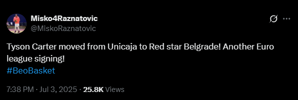 U jebote. Još sam pregledao tvitove, Beobasket agenciju i nema ga na listi. Čak i provukao kroz Ai. Hvala svakako. Moja greška.