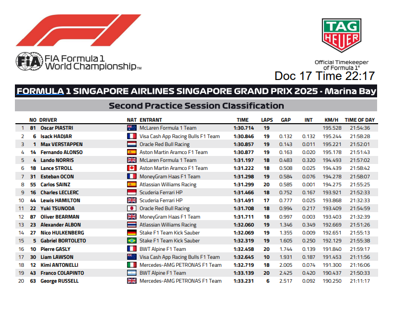 FORMULA 1 SINGAPORE AIRLINES SINGAPORE GRAND PRIX 2025