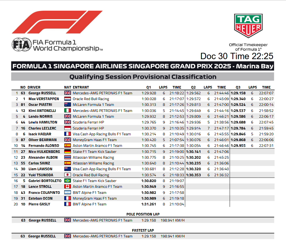 FORMULA 1 SINGAPORE AIRLINES SINGAPORE GRAND PRIX 2025