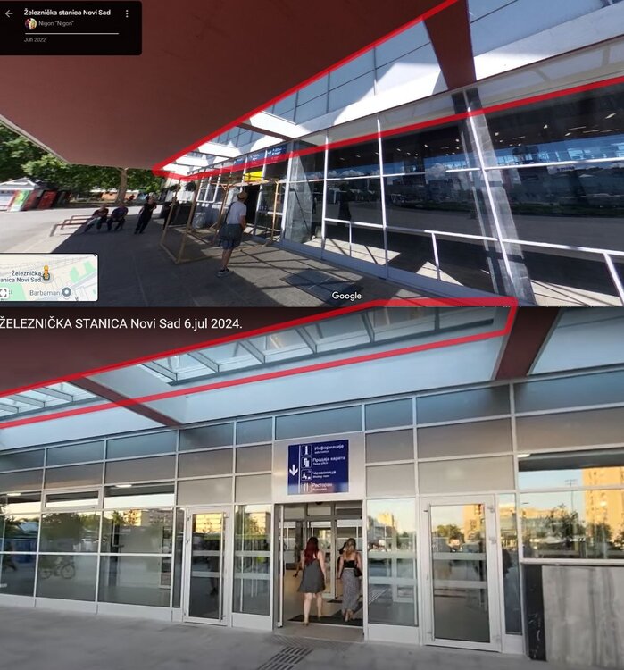 Danima sam utucen i u najdubljem saosecanju sa porodicama zrtava iako sam daleko od Srbije i NS. Besan i ocajan, narocito nakon sto sam pogledao snimak sa neke nadzorne kamere... 😪 Ne mogu da kazem da sam iznenadjen i sokiran, a nazalost ne bih ni iskljucio slicne katastrofe i u buducnosti. Isto tako ne mislim da ce se stvar uopste isterati „na cistac“, i da ce iko zbog ovoga podneti ni moralnu ni krivicnu odgovornost, jer kad se to ne desi nakon Doljevca, Jovanjice, ili Ribnikara – sto bi ovde i sada. Medijsko spinovanje je krenulo bukvalno od prvog sata nakon tragedije, relativizacije, zamene teza, abolicija odgovornosti - od TV, preko stampanih medija, do portala i socijalnih mreza. Moram priznati, svoj propagandni aparat su doveli do savrsenstva u najnegativnijem mogucem kontekstu nazalost, ali i Severna Koreja ima sta da nauci od naprednjaka. Tako da, uzevsi sve to u obzir kao i komatoznu svest naroda mogu vec da predvidim kuda sve ovo vodi i kako ce se sve zavrsiti... Ali necu o tome, jer to je za neku drugu temu… Ono sto hocu je da napisem sledece, sto mi se danima „mota“ po glavi gledajuci aftermath snimke i slike ove tragedije. Previse se paznje poklanja galeriji dodatoj u unutrasnjosti, koja u ovom slucaju nije jedini a sigurno ne odlucujuci faktor katastrofe. Po meni je mnogo veci problem ono sto se vidi na slikama „pre i posle“ takozvane „rekonstrukcije“ same nadstresnice i njene nosece strukture. Nisam gradjevinac ni arhitekta, ali se bavim izmedju ostalog obradom metala i metalnim konstrukcijama i neke stvari ovde meni kao poznavaocu tog dela struke „bodu oci“ i neki zakljucci mi se namecu cak i samo na osnovu slika i opstih podataka. Ako ima slucajno onih bez imalo tehnickog backgrounda samo objasnjenje: svaka konstrukcija podrazumeva uracunati odredjeni stepen sigurnosti, kao odnos kriticnog i nominalnog opterecenja u radu, zbog kojeg je ona sposobna da izdrzi opterecenja za taj stepen uvecana od onih proracunatih. Totalno laicki receno, to prakticno znaci da ako jedan stub treba da nosi 1000 kg a projektuje se sa stepenom sigurnosti 1.25 onda on zapravo moze da nosi do 1250 kg pre pojave kriticnih napona u konstrukciji. Ovde je nadstresica stajala 60+ godina, sve dok „rekonstrukcija“ nije poremetila njen staticki i dinamicki balans i preko granica uracunatog stepena sigurnosti. Ne treba biti veliki strucnjak pa na osnovu dostupne gradjevinske i projektne dokumentacije izracunati koliko se ova nadstresnica dodatno smela opteretiti – ako je vec morala – ali ocigledno da je i to bio preveliki zadatak za „strucnjake“ koji su u ovom slucaju rukovodili rekonstrukcijom iste. Ja dodatu tezinu na samoj nadstresnici vidim upravo kao primarni faktor za prekoracenje kriticnog opterecenja, a na osnovu slike „pre i posle“ koju sam zakacio (preuzeta sa neta u originalu) vidi se jasno da su postojeci otvori u konstrukciji prekriveni staklom, koje nose poprecni noseci elementi spojeni u ram, koji je polozen na uzduzni noseci profil polozen na betonski noseci element nadstresnice (uokvireno crvenom linijom). Za tacan ili makar jako pouzdan proracun dodatne tezine ovde su potrebni precizni podaci o ne samo specifikacijama navedenih gradjevinskih elemenata nego i projektne dokumentacije, sto je meni sve naravno nedostupno. Ali kao sto rekoh i ovo sto vidim sa slika mi je sasvim dovoljno da sa visokom pouzdanoscu mogu da procenim da je dodatno opterecenje na ovu nadstresnicu prevazislo makar 8 tona: 1. Dodate staklene ploce – radi se o ojacanom/temperovanom ili jos verovatnije laminiranom staklu, debljina mi je nepoznata ali za ovu namenu neki standard (kako za koga i kako gde) bi bio imedju 7,5 i 15 mm debljine. Po slobodnoj proceni razmera otvora sa slike ispod, i uzevsi u obzir potrebne prepuste za ankerovanje istih sa gornje strane, rekao bih da je sirina stakla oko 2 metra. Tezina po kvadratnom metru takvog stakla po navedenim specifikacijama je od 18 do 32 kg. Uzecemo kao pretpostavku da je tezina po kvadratu za staklo, vezivne, i izolacione elemente u ovom slucaju 25 kg (konzervativna procena). 2. Tanji profili koji formiraju noseci ram, sa slike opet, recimo da je u pitanju 6-8 mm sirine i nekih 200 mm visine, gradjevinski/nerdjajuci celik u tom profilu tezi po jednom metru od 8 do 12 kg, uzecemo 8 kg (varijacije su zavisne od kvaliteta opcionih materijala i elemenata - a uzevsi u obzir ko su ovde "izvodioci radova" sigurno se bira najgore i najjeftinije). 3. Glavni uzduzni profil na koji je oslonjen ram od nosecih profila a koji je prilicno robusniji, ali opet konzervativna procena neka se radi o „I“ ili „T“ profilu sirine 140 i visine 200 mm u punom materijalu, gradjevinski/nerdjajuci celik, po duzinskom metru neka bude tezina 40 kg. I da je u pitanju izlivena armirana greda razlika u tezini u sirem kontekstu ovde bi bila nebitna. Ukupno po duzinskom metru imamo: - ca. 2 kvadratna metra stakla dakle 50 kg - ca. 6 m poprecnog nosaca (sekcija noseceg rama 1 m duga) dakle 48 kg - 1 m glavnog noseceg profila dakle 40 kg Znaci po duznom metru je dodato konzervativno procenjenih 138 kg, a realnije i 25-30 % vise od toga. Duzina nadstresnice koja se obrusila po navodima oko 50-60 metara a mislim da je pre oko 80 metara. Neka bude da je sekcija od 60 metara pala, to znaci da je od „rekonstrukcije“ ona nosila dodatnih minimum 138 kg po svom duzinskom metru, odnosno ukupno 60x138 = 8280 kg. To je isto kao da je neko na nadstresnicu postavio 6 putnickih automobila srednje klase, iliti po jedan recimo Ford Focus na svakih 10 metara. Pokojni Farkas je konstruisao Zeleznicku stanicu po svim merilima i pravilima struke svog vremena, i sluzila je svojoj svrsi u punom obimu i potpunoj bezbednosti putnika i prolaznika preko 60 godina. Ali niko, pa ni on, nije i nece projektovati nista sa mislju da to mora da izdrzi sve sto igrom sudbine i nesrecnih izbora pojedinca ili naroda za 60 godina padne na pamet nekome ko nema pojma sta radi. I opet, s
