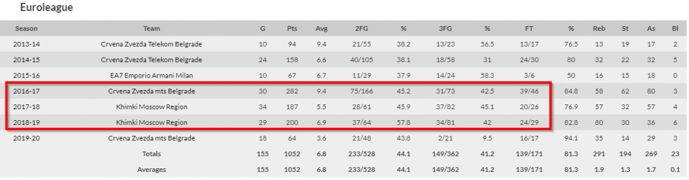 ne trebaju te partije iz eurocupa dovoljne su one iz EL/ABA od pre 2,5-3god 9-10ppg, uz 40%+ za 3(u ABA je te godine sutirao 50%) -