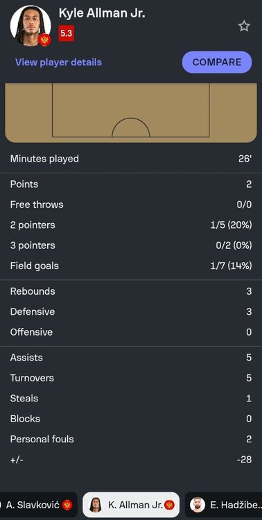 Da je Slovenija izasla upola agresivno sinoc kao Ceska danas ne bi sigurno izgubili onako kako jesu. Za njih smo utvrdili da ih kurcobolja u odbrani kosta previse, oni jednostavno ne igraju odbranu uopste u poslednje vreme, razumem za Doncica ali ostala 4 na parketu moraju da riljaju non stop a oni igraju maltene na nivou Doncica odbranu.