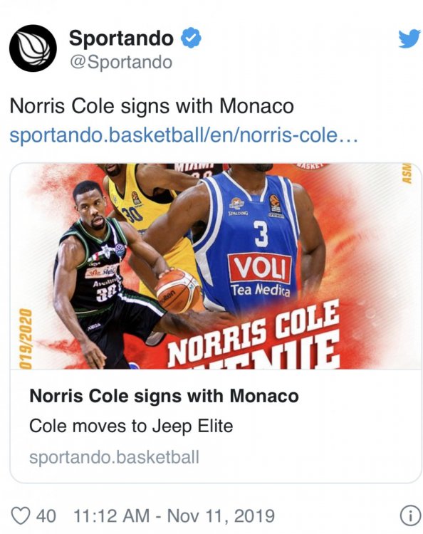 Norris Cole u crveno belom, pod vođstvom Saše Obradovića. Još samo da je Zvezda u pitanju! 🙄😏 #FILIPEODLAZI