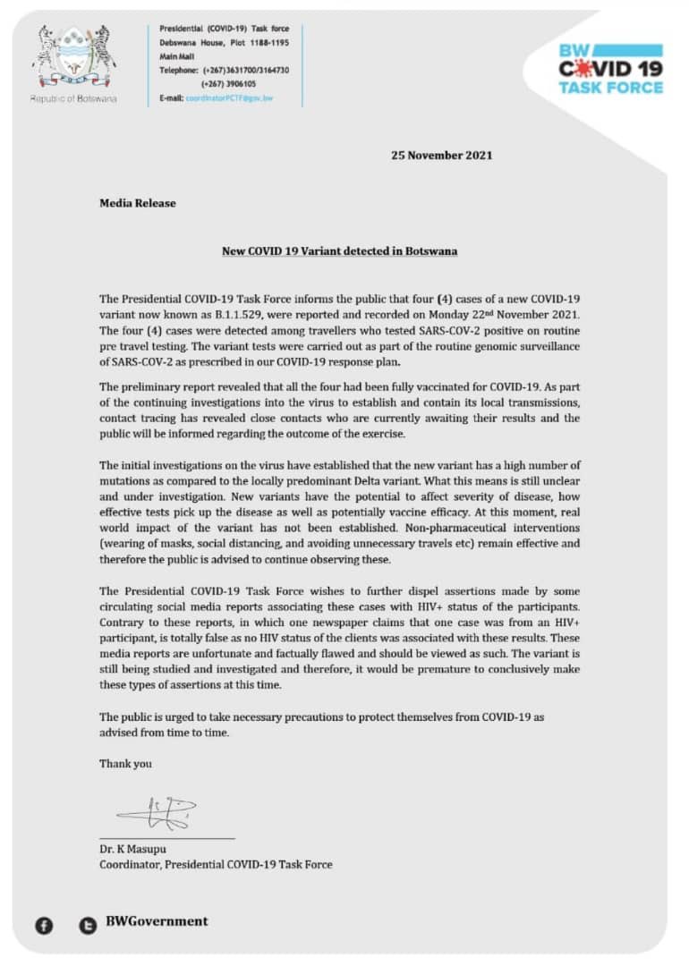 vrlo ozbiljan dopis/saopstenje nadleznih organa u Bocvani.