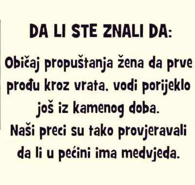 𝓑𝓪𝓫𝔂 Posted April 25, 2023 Posted April 25, 2023 On 4/23/2023 at 4:02 AM, Kronostime said: Pre par dana drustvo na plazi i jedna malo vise drami nego potrebno oko ajkula. Drugar pocne da prica kako njegova zena isto tako, ali ona kada odu na more prvo pobaca decu u vodu pa ako se nista ne desi, skace. Mi u nesvesest. 16 hours ago, Kronostime said: Sve je dobro dok ne pocne da je hrani kobasicama i cvarcima 😄