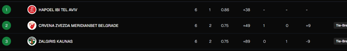 kokodakalo Posted 5 hours ago Posted 5 hours ago Na 6-2 smo, sto je prosto neverovatno posle prve dve u EL, ali bitno je da ne poletimo. Za sad imamo samo jedan brejk viska. Realno nam treba iz preostalih 30 kola 14 pobeda za Play in. Ako braca sutra dobiju Hapoel kao domacini mi smo drugi na tabeli. 3